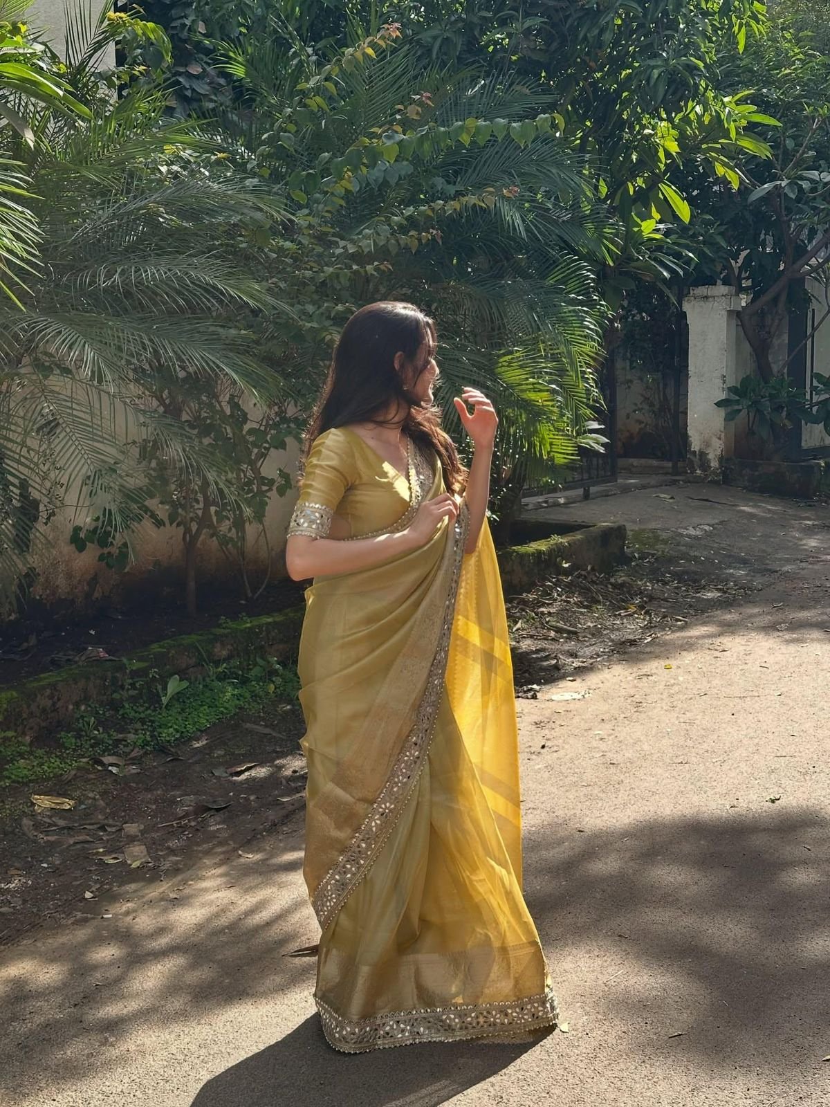 Elevate your festive and party wardrobe with this new trending designer mirror work organza saree crafted from premium soft tissue organza fabric.