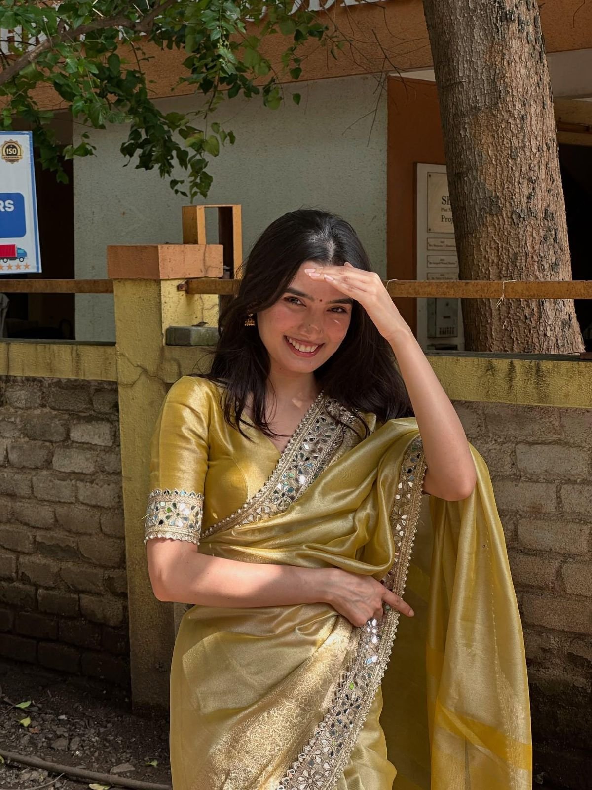 This saree features a beautifully detailed original mirror work lace border that adds a rich and glamorous touch to your overall look. The elegant weaving texture enhances the shine and gives a luxurious finish, while the rich weaving pallu completes the grand designer appearance.