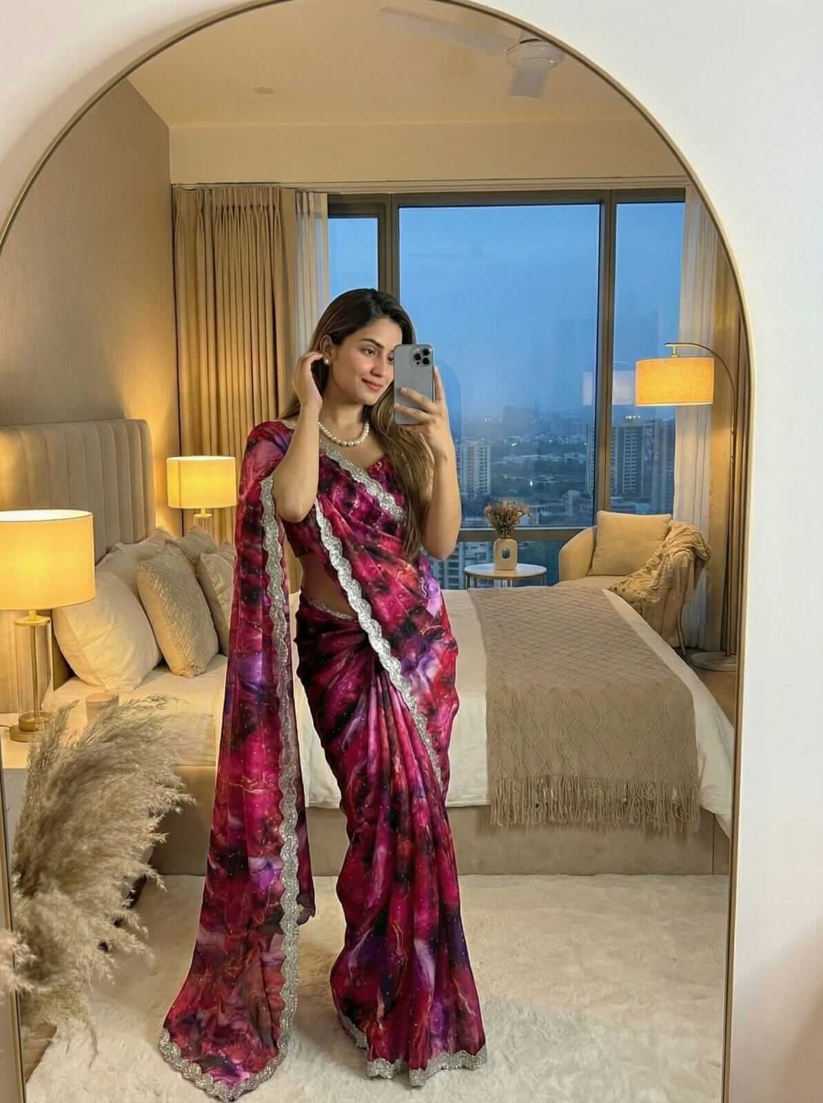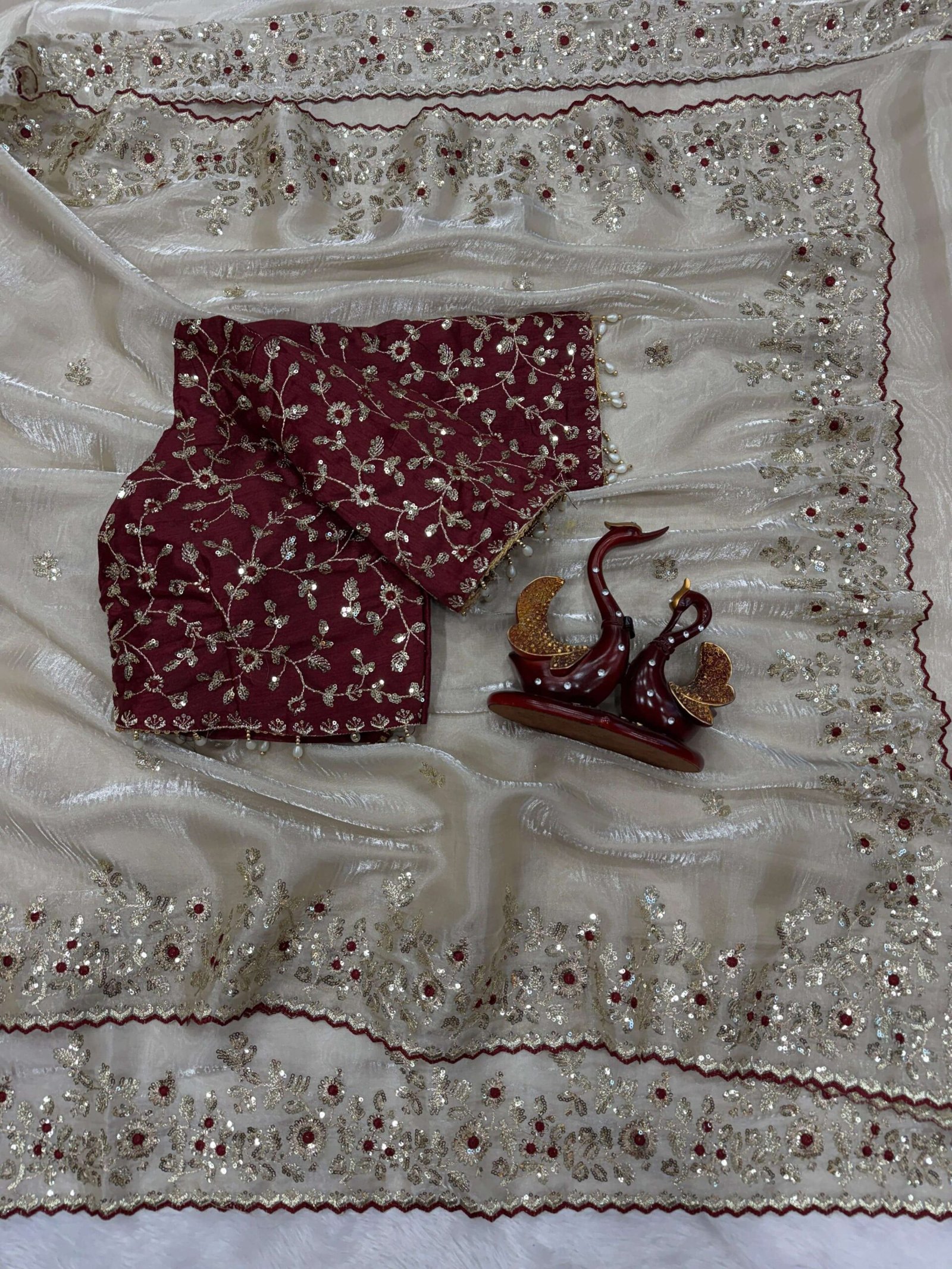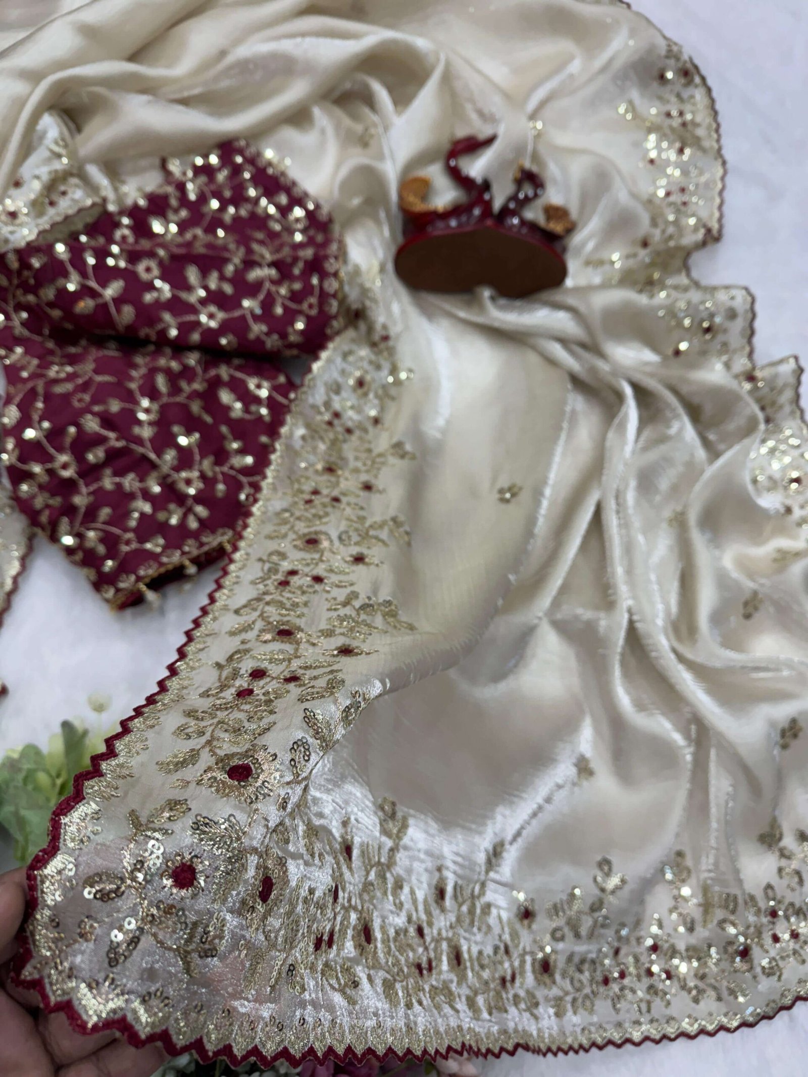 Premium Jimmy Chu Saree with Sequin Work & Designer Stitched Blouse