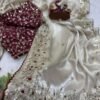 Crafted from premium Jimmy Chu fabric, this saree features exquisite sequin embroidery that sparkles beautifully under light, creating a graceful and luxurious presence. The soft texture and fluid drape ensure comfort while maintaining a rich festive appearance.