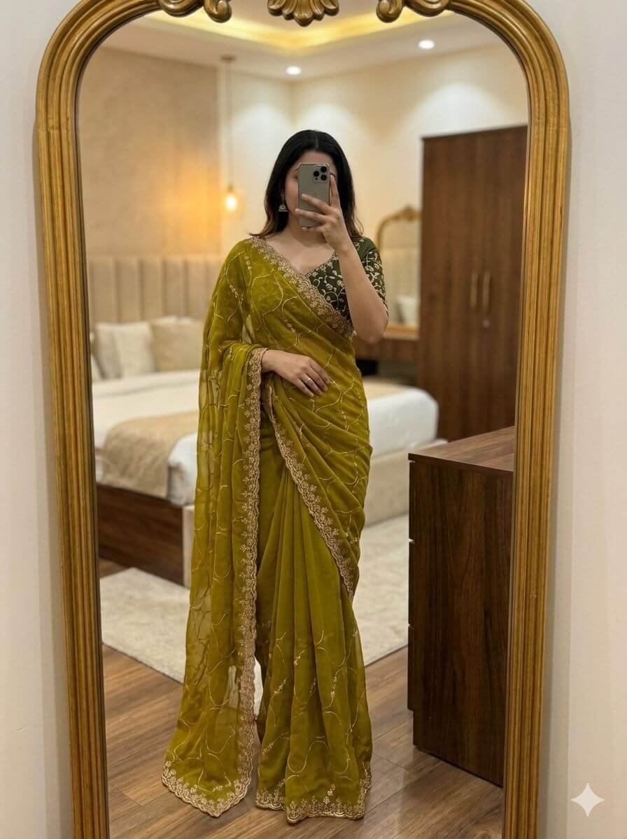 ★ Material: Premium Star Georgette | Lightweight, flowy and elegant fabric that drapes beautifully for a graceful look.