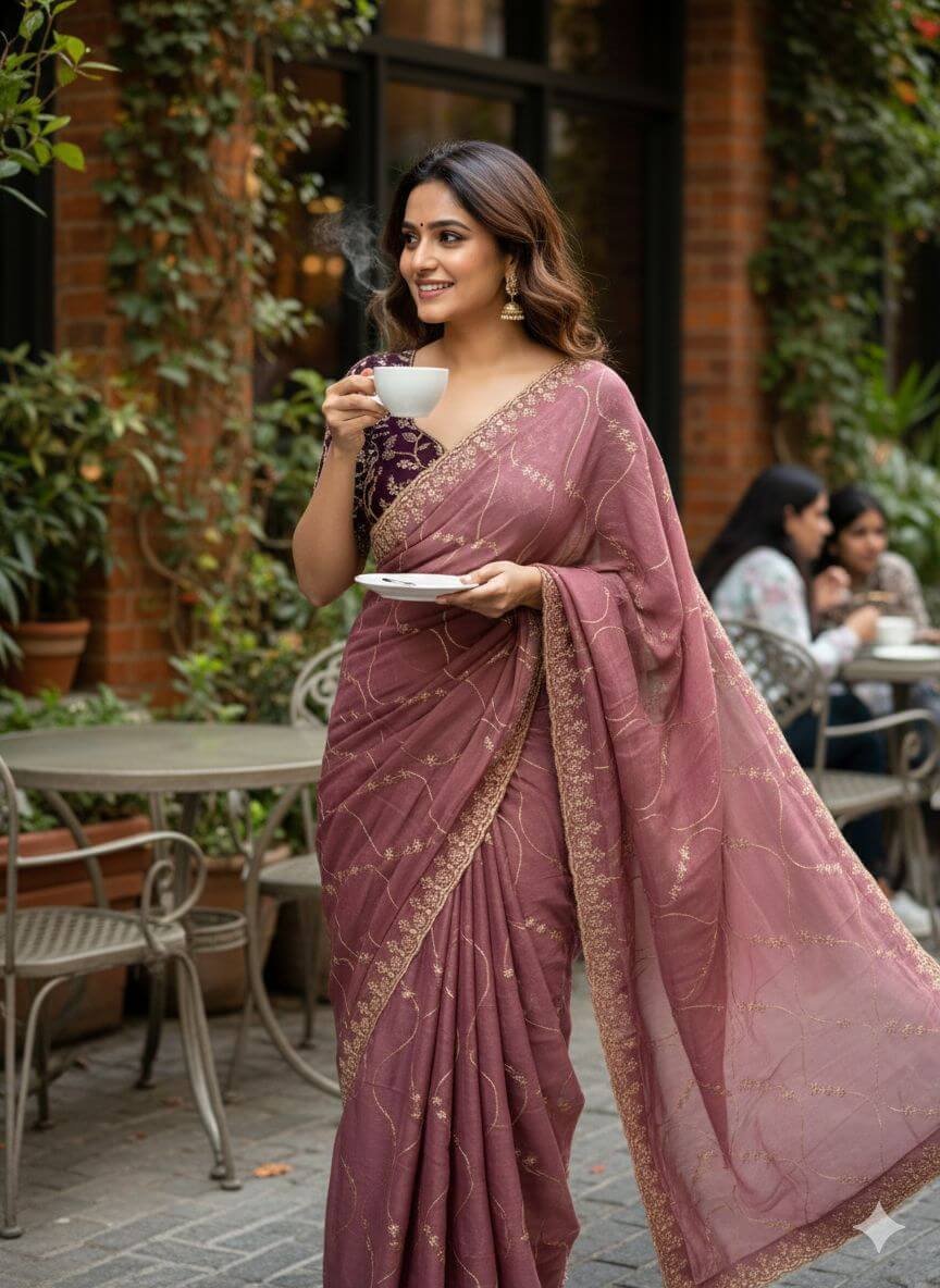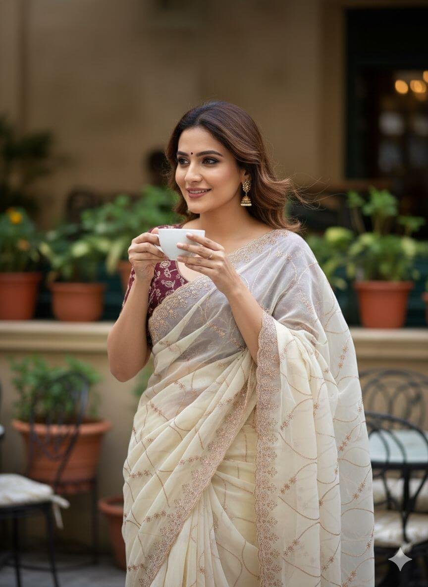 This saree features premium star georgette fabric that feels feather-light on the skin while offering a beautiful natural fall. The intricate multi-thread embroidery spread across the saree enhances its luxurious appeal, making it perfect for special occasions, celebrations, and evening gatherings.